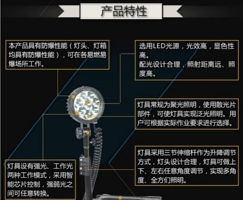| | 防护等级:IP66 | | 主要适用范围:工矿户外应急救灾 | | 包装:纸箱包装 | |