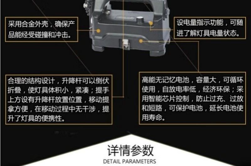 便携与升降设计:配备可升降结构(如气压三角架或升降杆),高度调节范围通常在1.2米至3米之间,方便适应不同作业需求;灯箱底部装有轮子,顶部有提手,移动和操作轻松便捷。